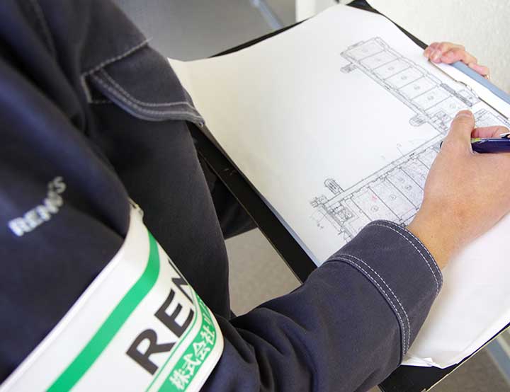 リノシスの営業スタイルは飛び込みなど行うのではなく、建築技術部を含むプロジェクトチーム全員で、それぞれのマンションに応じた修繕の提案を出し合っていきます。チーム全員で進めていく為、営業を経験したことがない人でも順応しやすい仕事だと感じています。